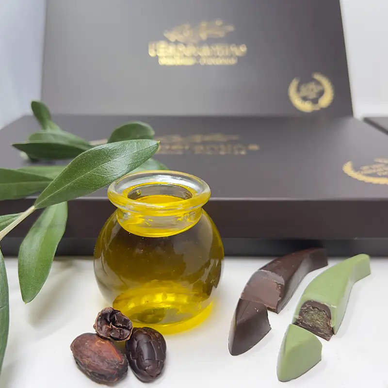 …But with one unexpected ingredient in the world of chocolate: olive oil. This became the key element of his signature creation — a natural flavor enhancer, symbol of nobility and refinement.